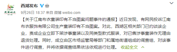 相关部门发布也就不当图案的问题发布通报,此事得以告终。