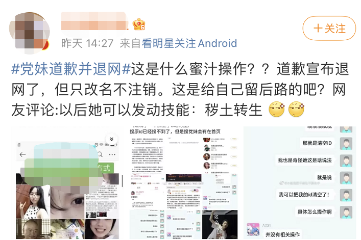 还有网友吐槽党妹的账号只是改名没有注销,这是给自己留后路呢?