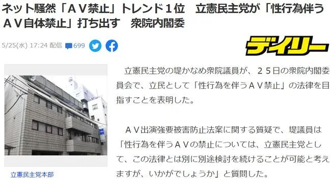 近日有网友称,日本议员提出要设立“禁止AV”法案了!