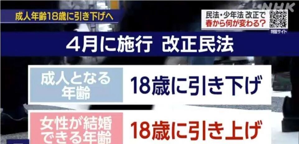 首先,起因是今年的4月1日,日本新民法将成年的年龄从20岁下调至18岁,同时这也是时隔146年来,日本首次下调成人年龄。