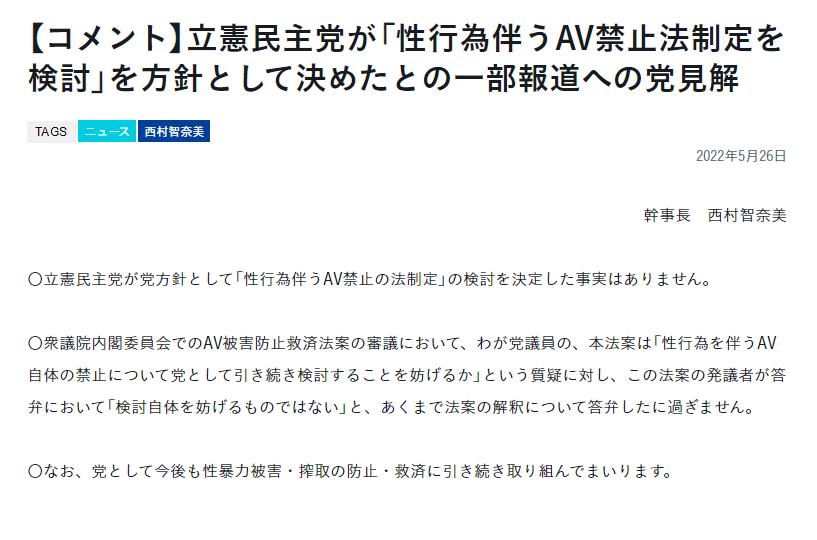 因此,才有了文章开头“日本议员提出要设立AV禁止法案”的消息。直到现在,这件事的争论还在继续发酵中。