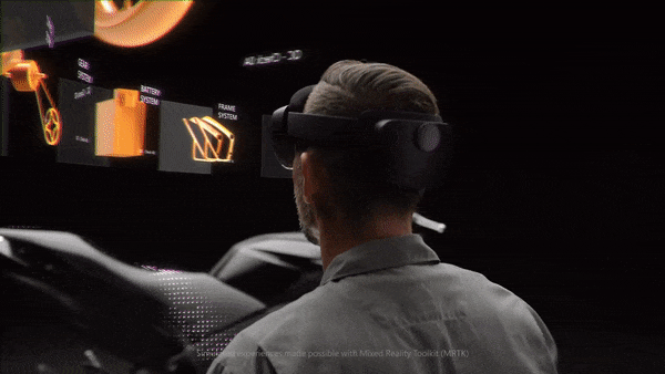 现在市面上存在的是2019年发售的HoloLens 2代,看似笨重的眼镜,只要戴上它就能用手势和语音进行操控,颇具未来感。