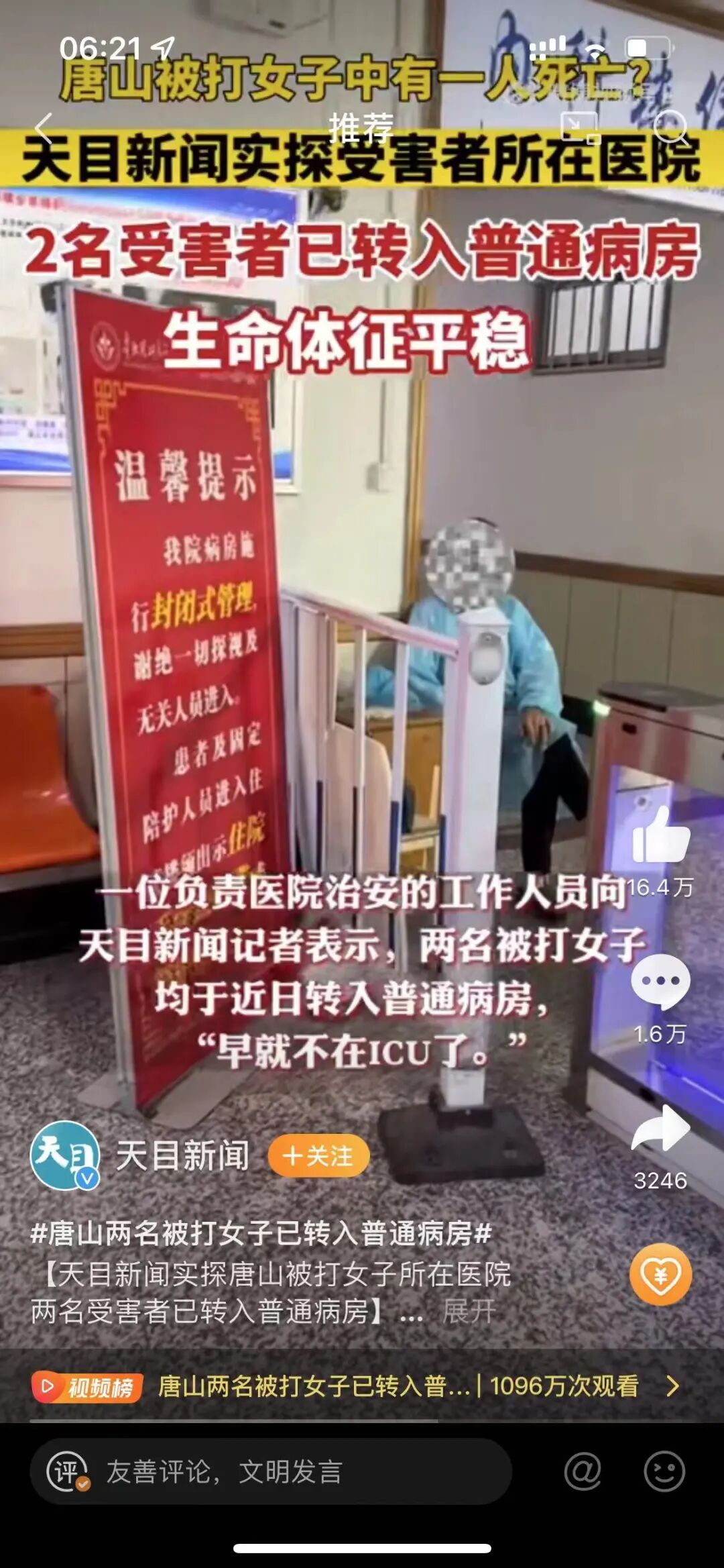 而事实上,目前两位被打住院的女性生命体征平稳,均已转入普通病房,不在ICU了。