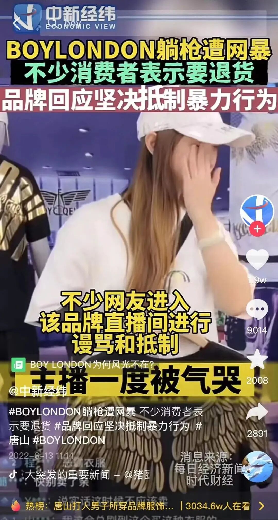 “正义”的网友冲到了BOY LONDON直播间里骂,给人家主播都气哭了。