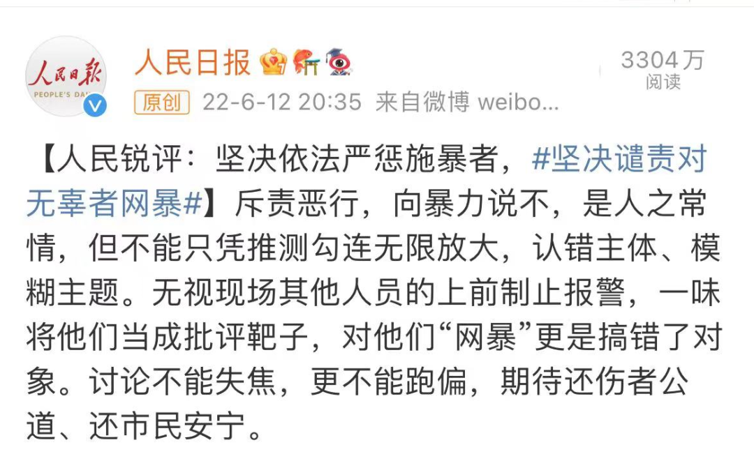 正如《人民日报》所评:讨论不能失焦,更不能跑偏,期待还伤者公道、还市民安宁。