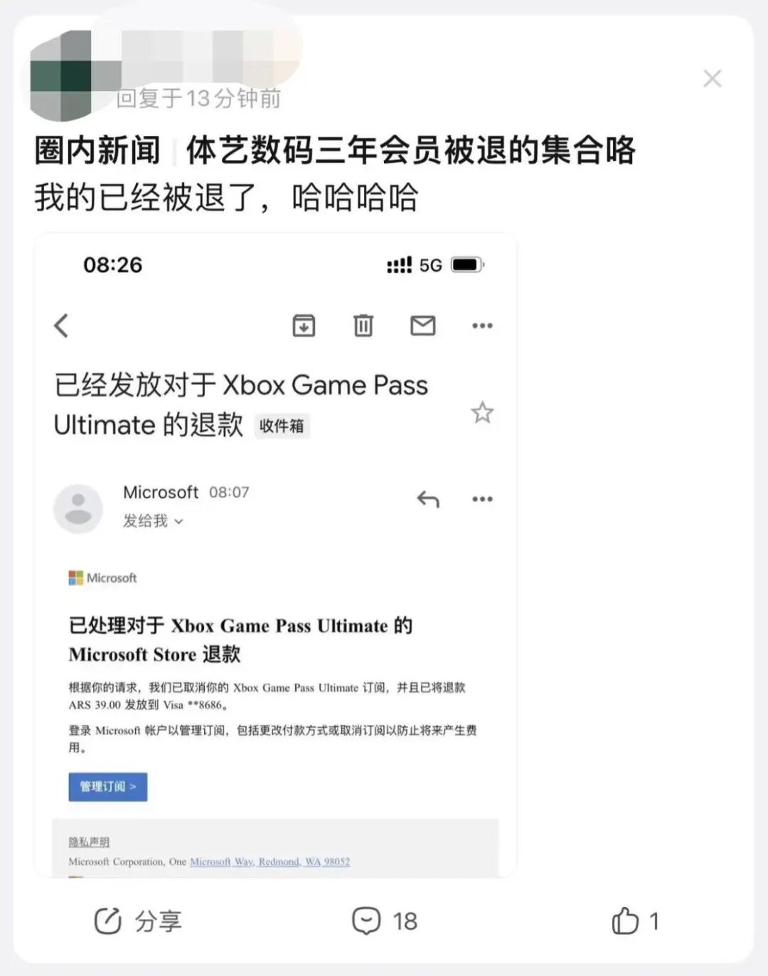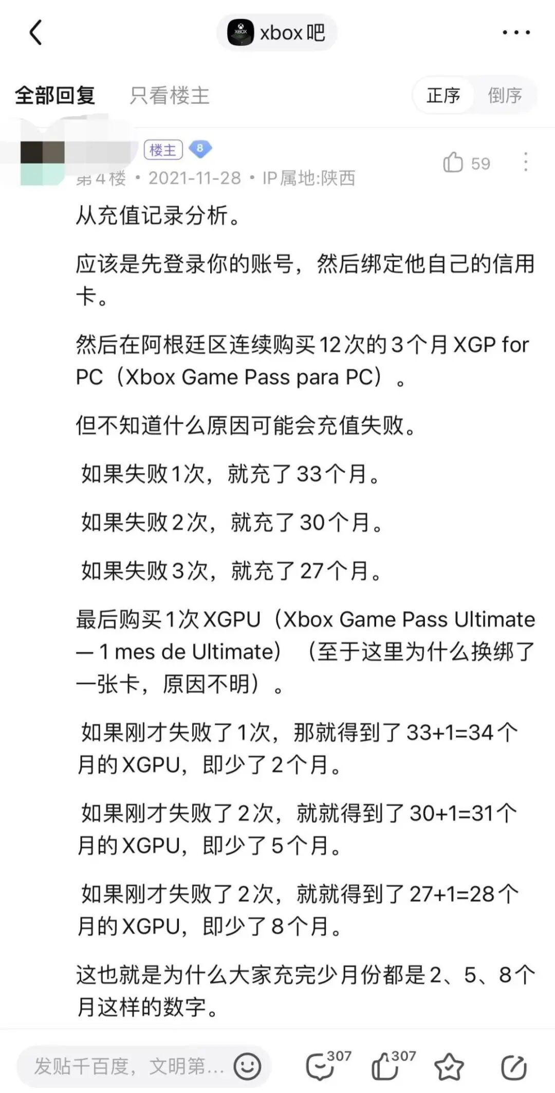 随着玩家们互相分享和分析,发现这次集体被取消服务,多半是去年XGP低价活动时发生的,具体操作是奸商用无限请求卡BUG进行充值,39阿根廷比索折合人民币2块多,一薅就是3年!
