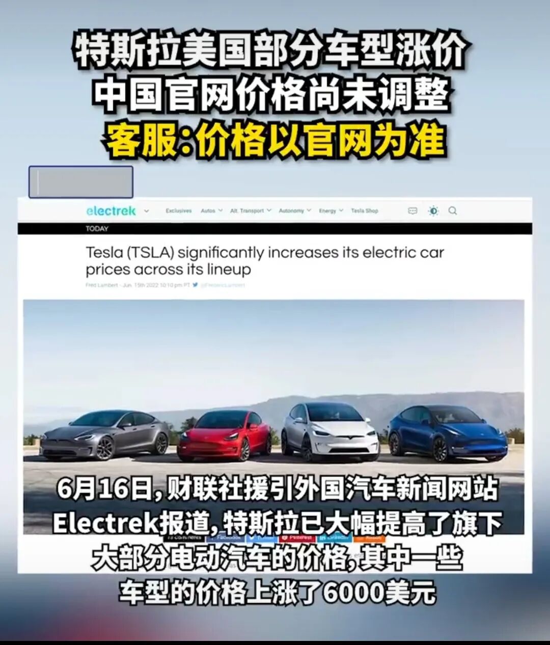 有外媒报道:特斯拉宣布在美国市场将提升全线电动汽车的售卖价格,甚至一些车型涨幅达到6000美元(人民币约40196元)。