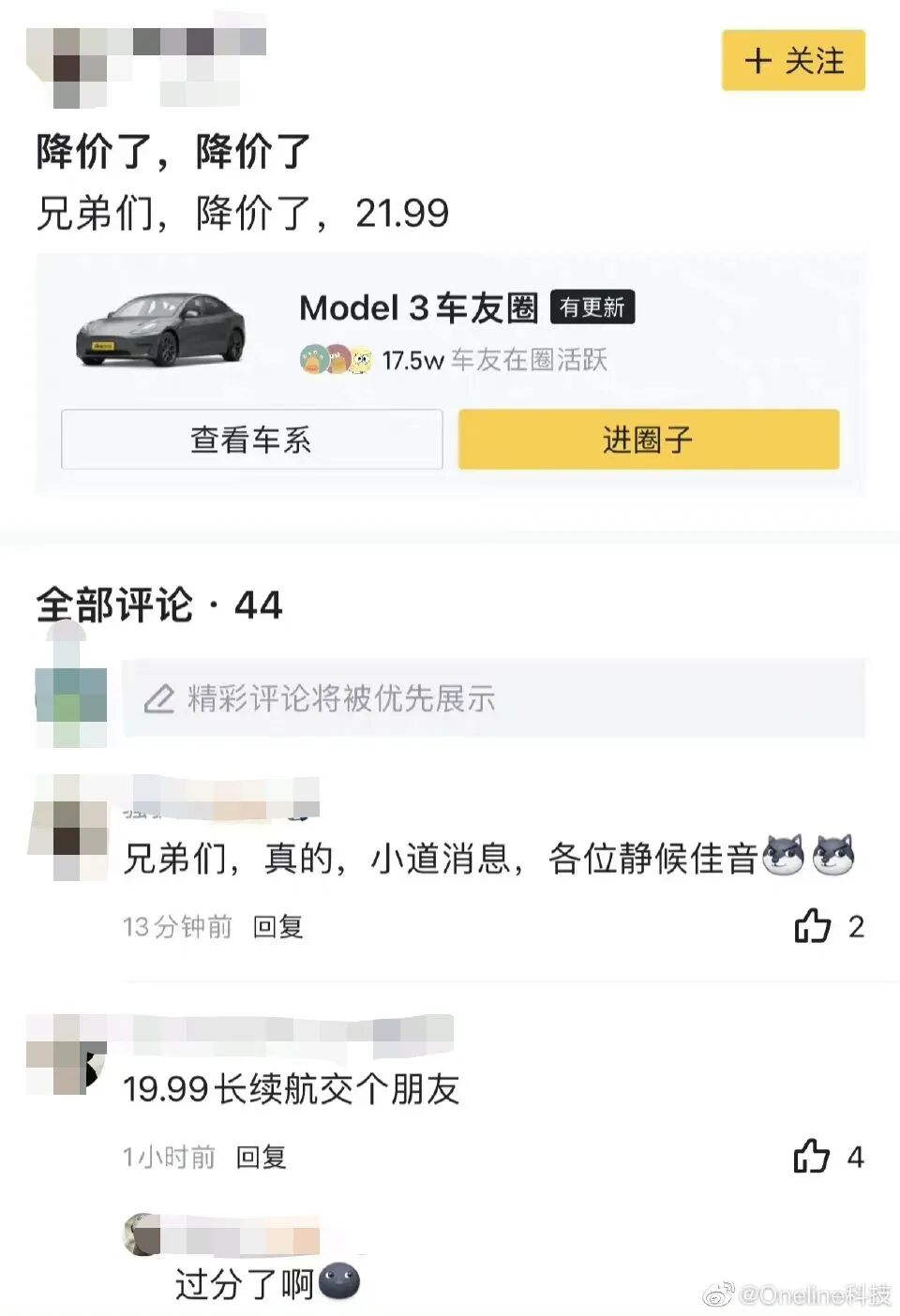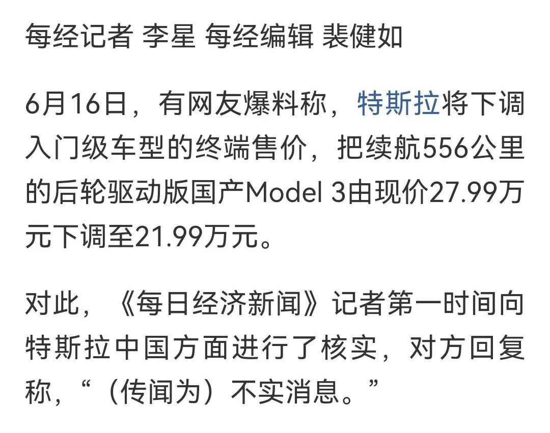 这几天,鸭鸭在冲浪的时候,刷到了特斯拉要降价的消息:后轮驱动版的国产Model 3将降价6万元!