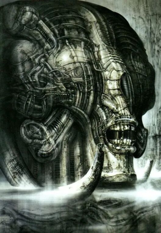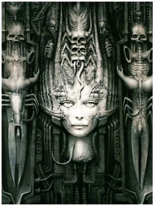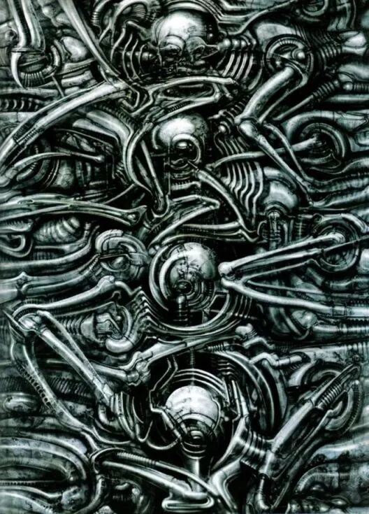 他的作品以《死灵之书》(克苏鲁文化中的经典)、《异形》为代表,把人体和机器用冰冷黑暗的手法巧妙的联系在一起,黑暗、抽象、怪异、又吸引人,让人看完印象深刻。