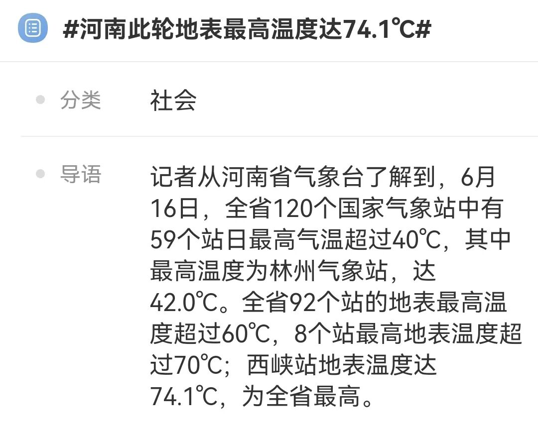 更让鸭鸭震惊的是,河南此轮地表最高温度达到了74.1摄氏度!