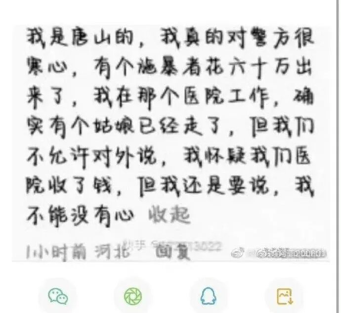 最近这几天,又有一篇名为《唐山又出恶性大事件:女研究生被强奸、打断腿爬两公里求助》的文章全网热传。