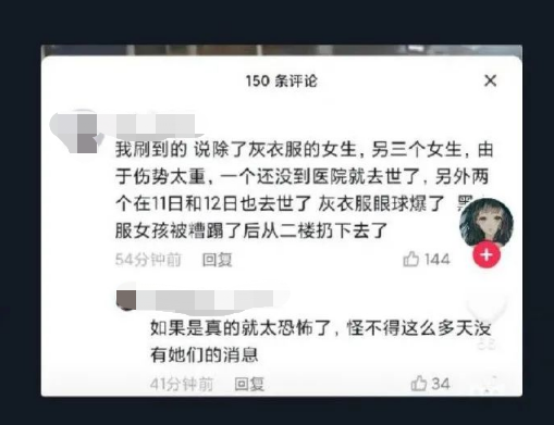 其实早在6月10官方就已经明确公告:四名被殴打受伤的女子中,两名正在医院接受治疗,无生命危险;另外两名伤势较轻未住院治疗。