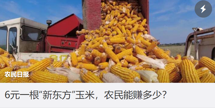 农民日报:6元一根“新东方”玉米,农民能赚多少?