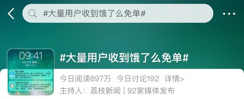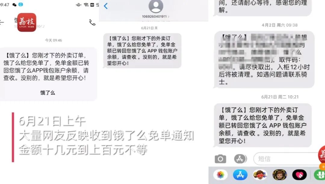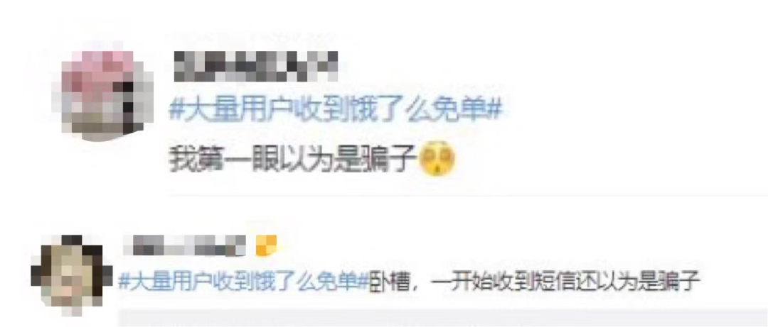 原因是不少网友反映:收到了“饿了么”的免单通知短信!