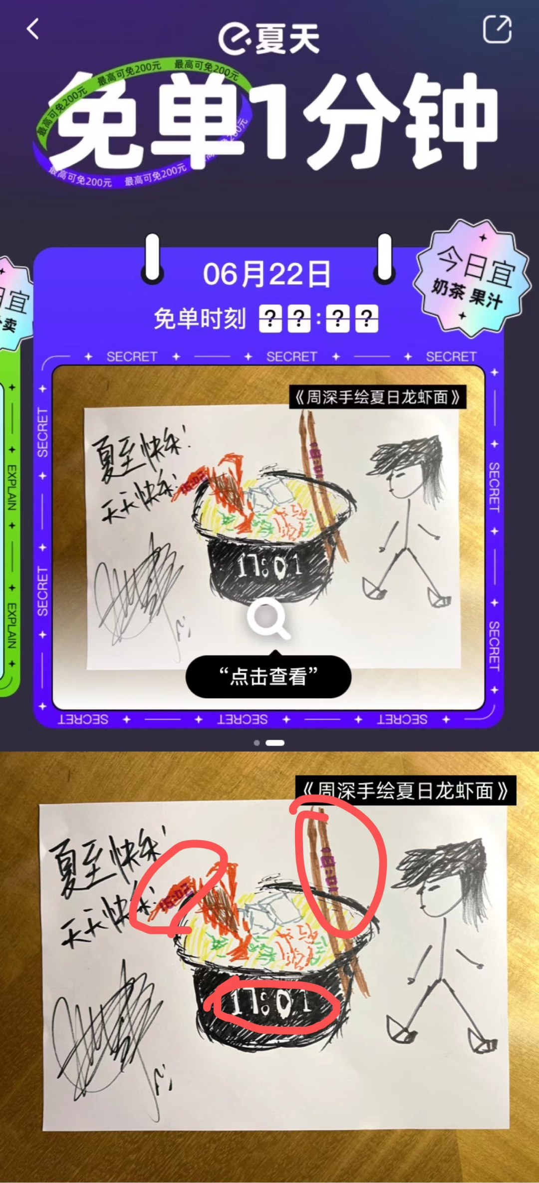 简单来说,这个活动需要消费者猜题点外卖,猜对就能享受免单活动,当天题目会在前一晚19点公布,只要订单中有1个商品含当日品类关键词,就可整单全免,最高免单200元。