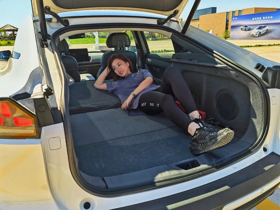 放倒后排座椅后,鸭厂知名大长腿甚至能就地躺平