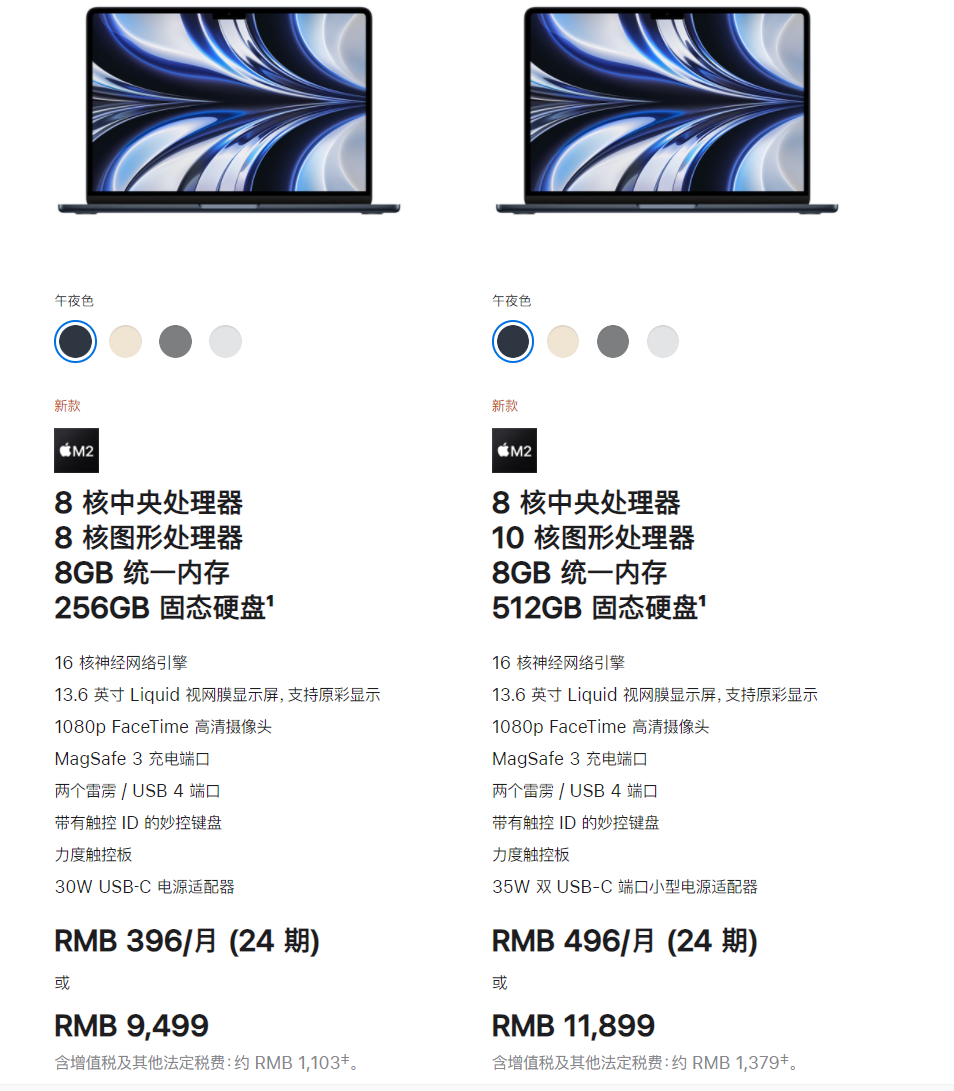 苹果表示,在性能方面,M2芯片比M1芯片的CPU性能将提升18%、GPU性能将提升35%。借助M2芯片,MacBook Air现在可以配置高达24GB的统一内存。