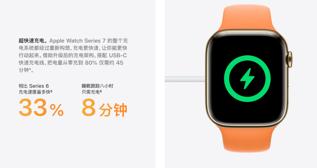 值得一提的是,虽然Watch 7没啥新功能,但快充🔋这块还是安排上了。