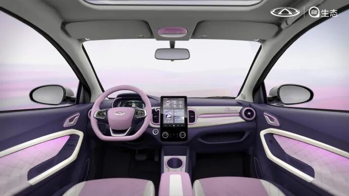 内饰采用紫罗兰色,配备七彩律动氛围灯、3种定制香氛,还新增了10.4寸智能中控液晶大屏、360全景影像、BSD盲区监测等配置,打造更加独一无二的空间。