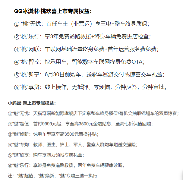 我们在奇瑞新能源官方看到,这两款车型都具有良好的服务。