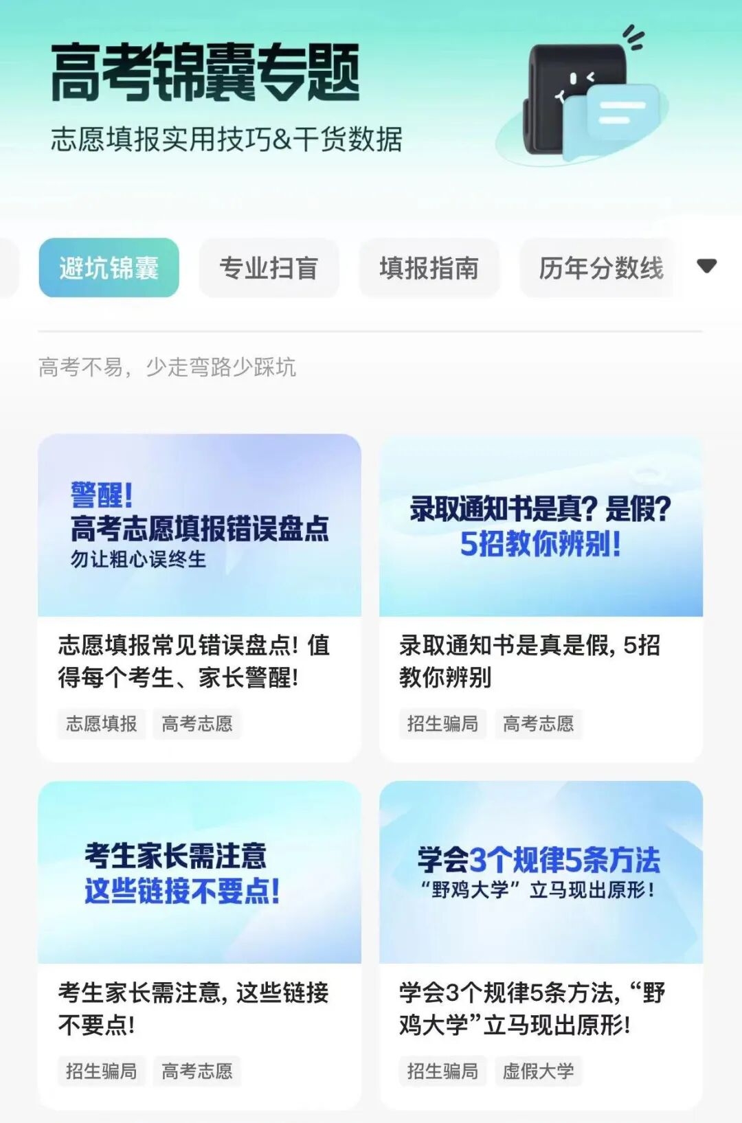 还有满满的高考锦囊,什么“虚假大学怎么甄别?”、“专科志愿如何填报?”等等各种小技巧、专业分析,进一步辅助你填好志愿。