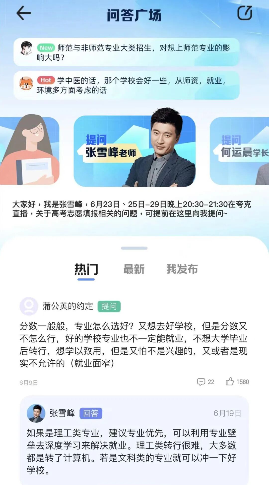 可以蹲到资深升学指导老师张雪峰、中国教育在线执行总编辑陈志文、执行总编辑任蕾等专家在线指导支招哦。等专家在线指导支招哦。
