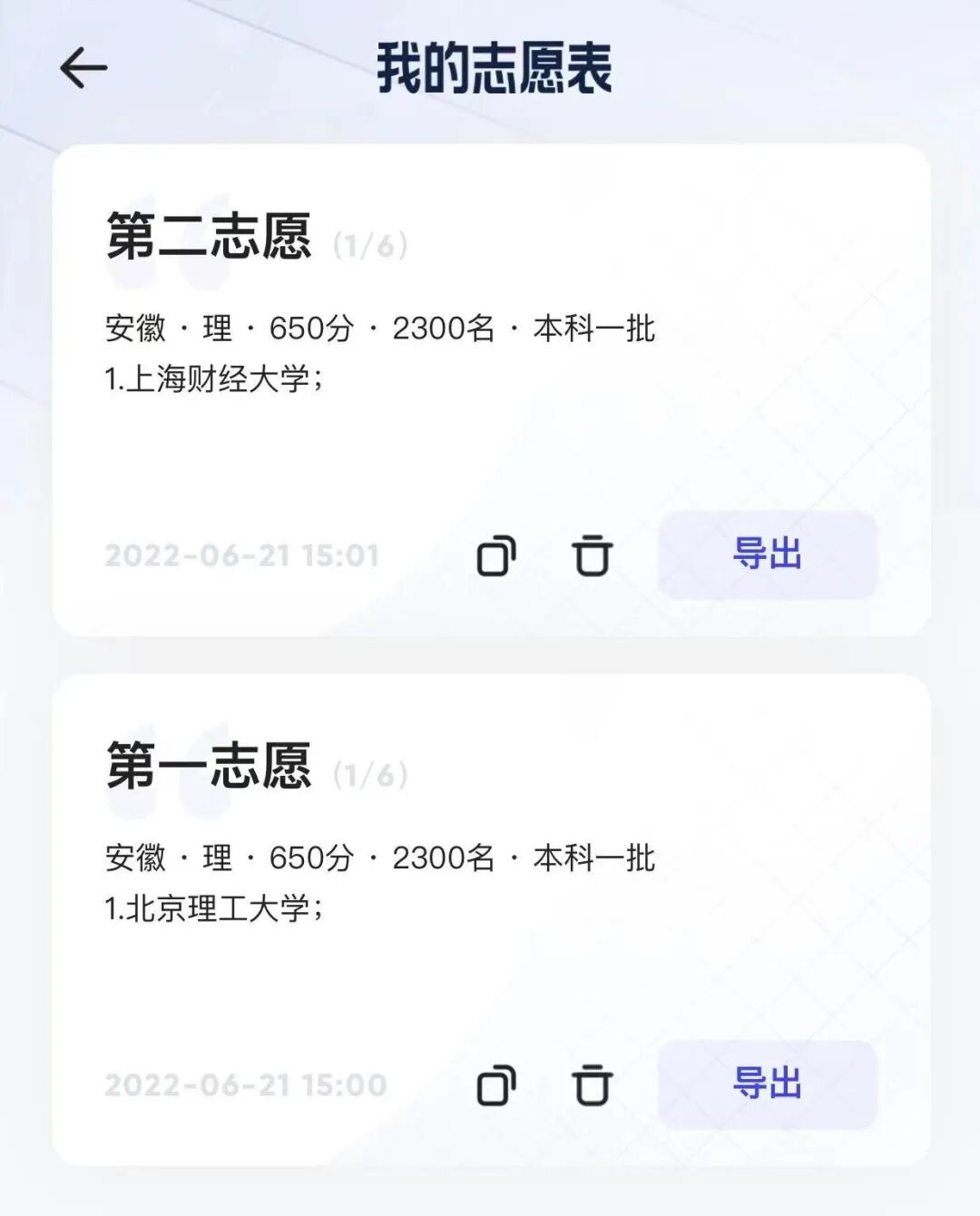 而且志愿表可以一键导出、链接打印,方便家人分享讨论。这个功能对于一些志愿数量较多的省份非常友好,对照着导出的志愿草考正式填表,多次校对,降低漏填、错填的风险。