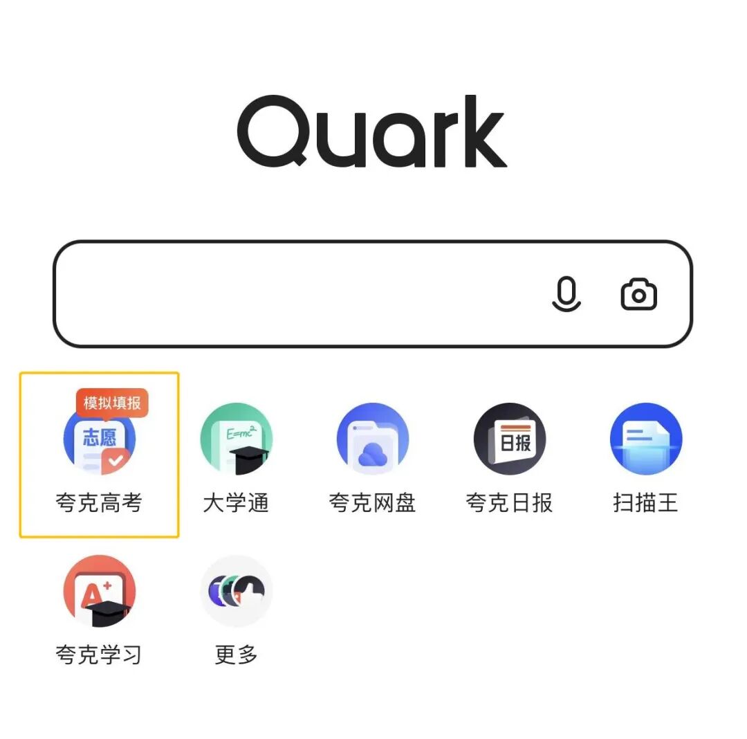在夸克APP搜索框下直接选择“夸克高考”,或者搜索“高考”二字,都可以进入夸克高考。