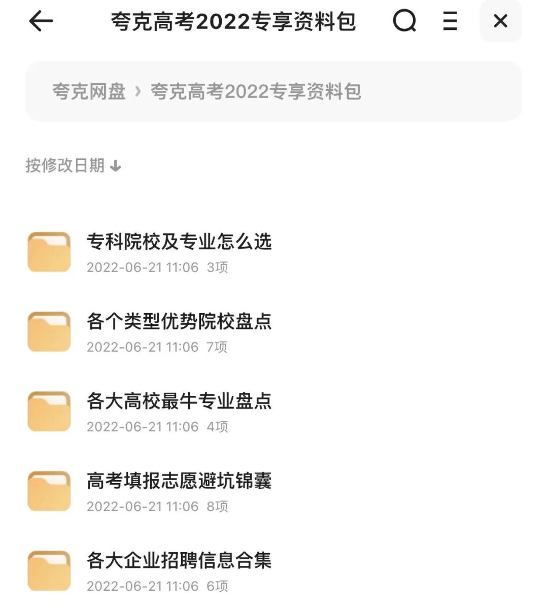 另外还有个小窍门,选择了“夸克高考”之后,夸克会在网盘里送一份“高考锦囊”,提供一些干货资料给你参考。