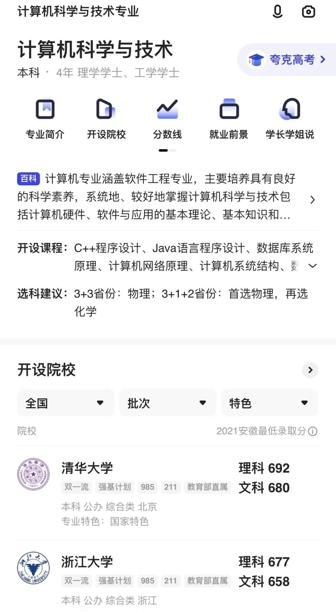 所以说,夸克APP并不是随随便便给出几个学校、专业那么简单,是真的有干货滴。