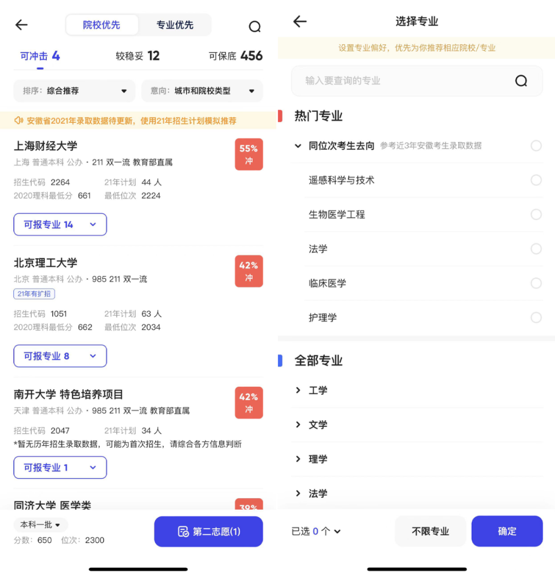 上面的志愿填报推荐功能,相信已经能够辅助解决大多数学生党和家长的选择困难症了。