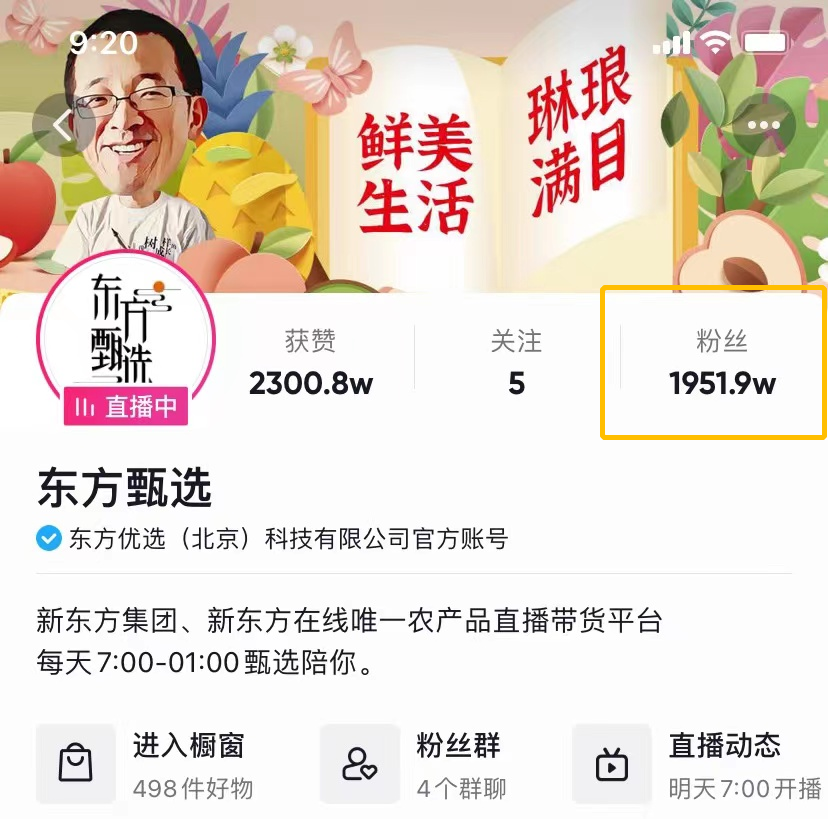 而“东方甄选”的粉丝,也从之前不痛不痒的几十万涨到了1951多万。