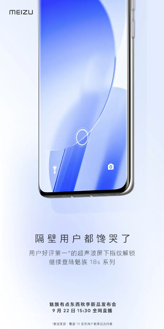 魅族18s系列将继续搭载超声波屏下指纹。