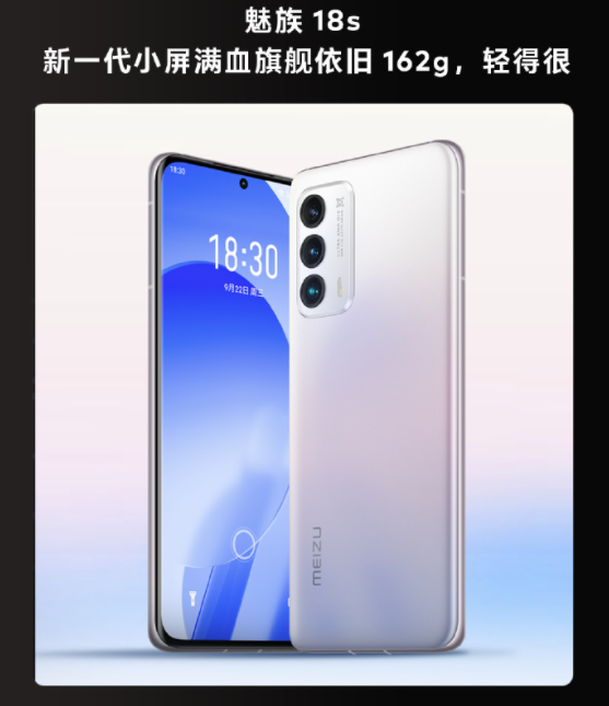 从宣传海报上来看18s的外观和18基本没有太大差别,魅族18s新一代小屏满血旗舰依旧162g,轻得很。