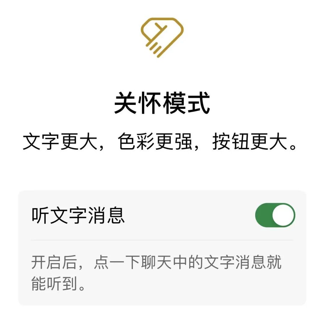另外,在“青少年模式”下面的“关怀模式”下,现在可以语音播放听文字消息了。