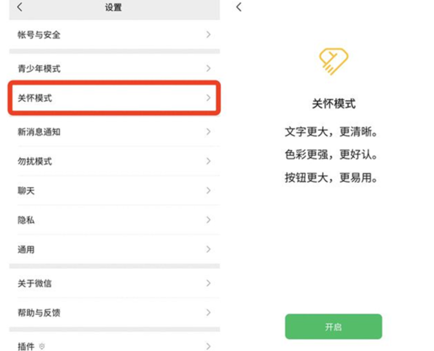根据已下载网友反馈,在此次测试版中,官方在微信设置中加入了“关怀模式”,开启该模式后,微信文字将会变大,色彩也会更加鲜艳,同时按钮也会变大,更加方便使用。