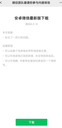 @快科技:日前,腾讯微信团队发布微信安卓8.0.14测试版更新,更新日志显示一些已知问题已经优化。