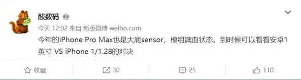@快科技:昨天,数码博主@酸数码表示,今年的iPhone 14 Pro Max将搭配大底主摄。