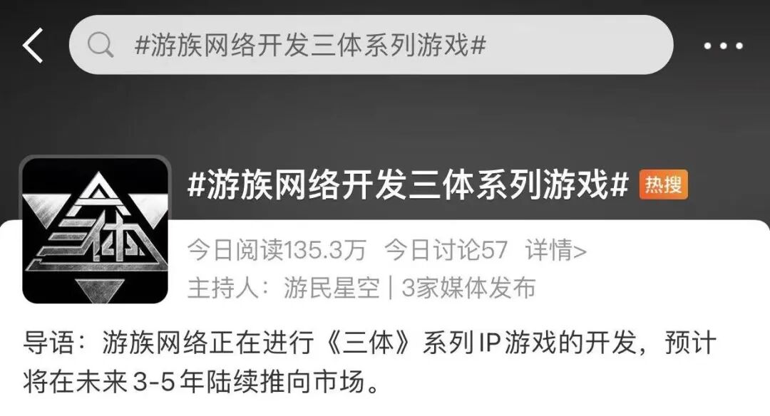 近日,一则“游族网络正在开发《三体》系列IP游戏,预计未来3到5年陆续推向市场”的消息在游戏圈炸开了锅,不少围观玩家都表示,真的能做出来吗?