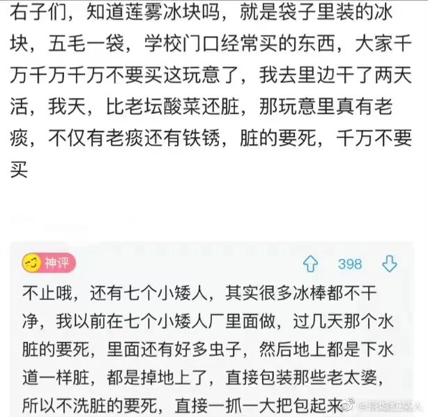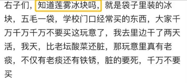 结果就在这两天,突然有网友爆料,说雪莲冰块不干净。