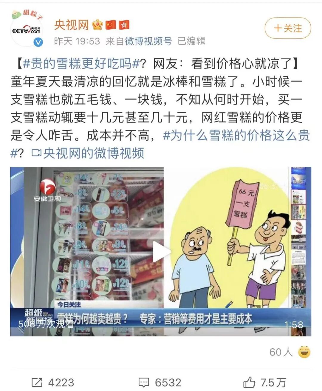 另一方面,就是各大雪糕厂不停在雪糕的营销上开始“卷”,布局更加“高端”的产品,同时也冒出了很多所谓的网红雪糕,贵的钱都跑到宣传上去了。