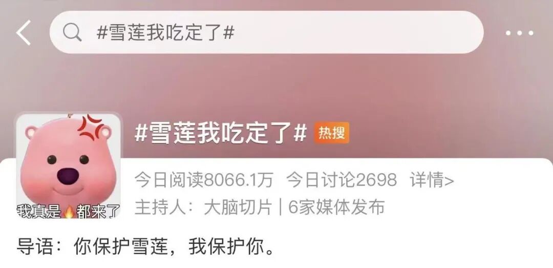 事件发展到现在,不仅雪莲这个老牌子又重新翻红了,之前冤枉错它的网友还发起了一场“雪莲我吃定了”的运动,纷纷用文字来拿捍卫自己吃雪糕的权力。