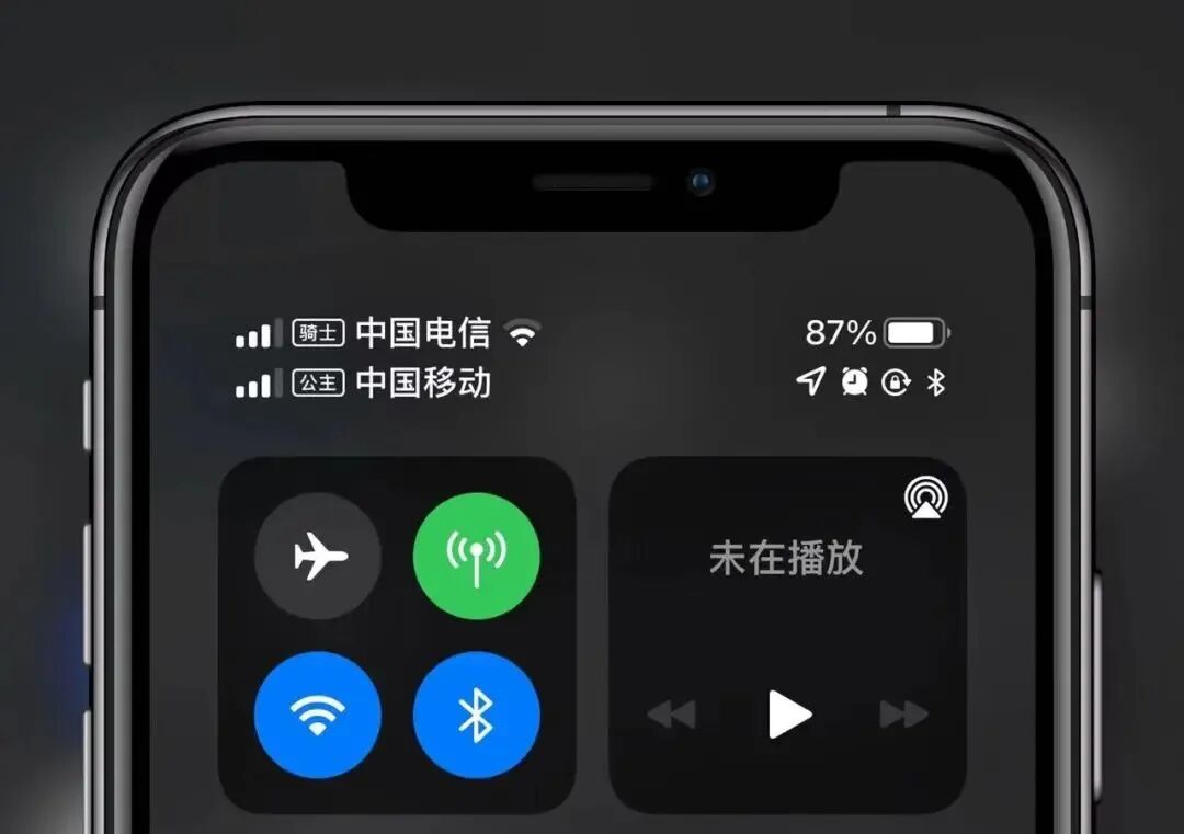 再次说明,右上角下拉展示自定义信号标签,只有双卡双待的iPhone才可以哦!