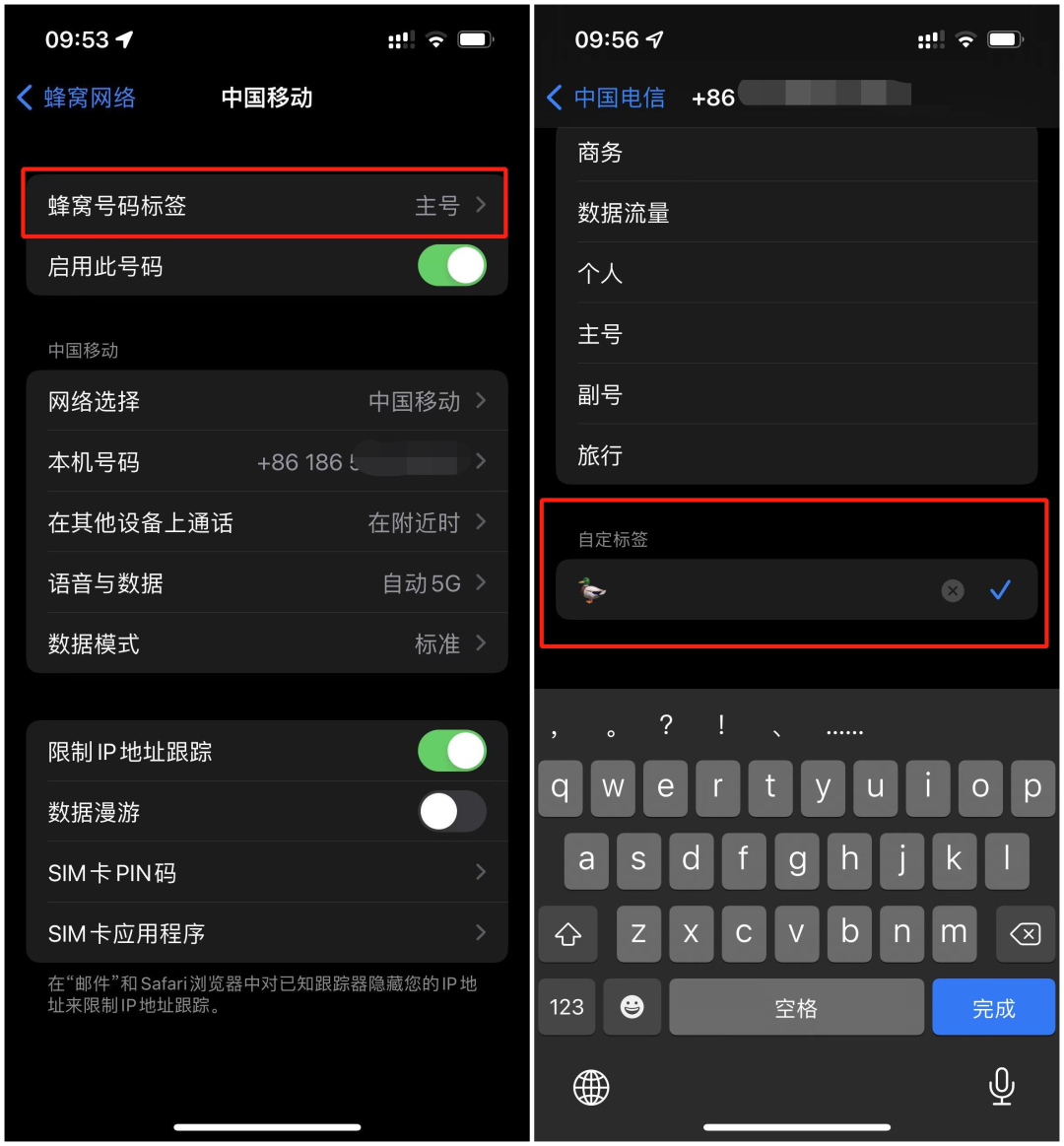 找到【蜂窝号码】后,点击其中的一个号码,然后点击【蜂窝号码标签】,找到【自定义标签】,在这里我们就能输入自己想要的表情啦~