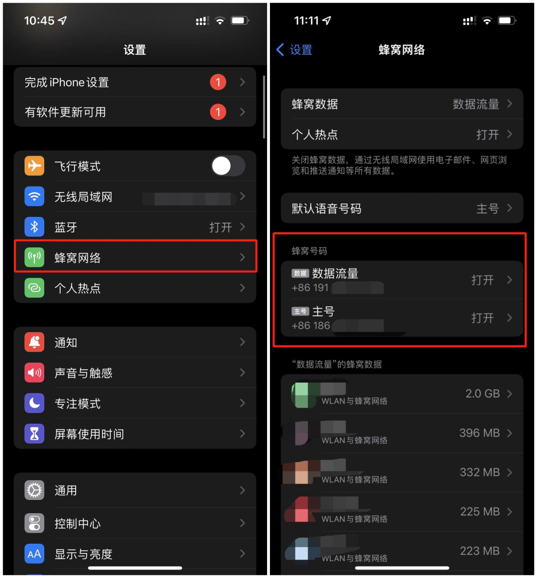 设置方法非常简单,在iPhone的设置中找到【蜂窝网络】,找到【蜂窝号码】。