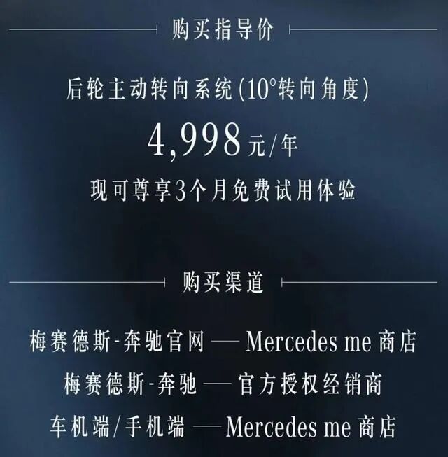 车主支付4998元,可体验一年的后轮转向功能(后轮解锁10°转向角度,拐弯调头更灵活)!