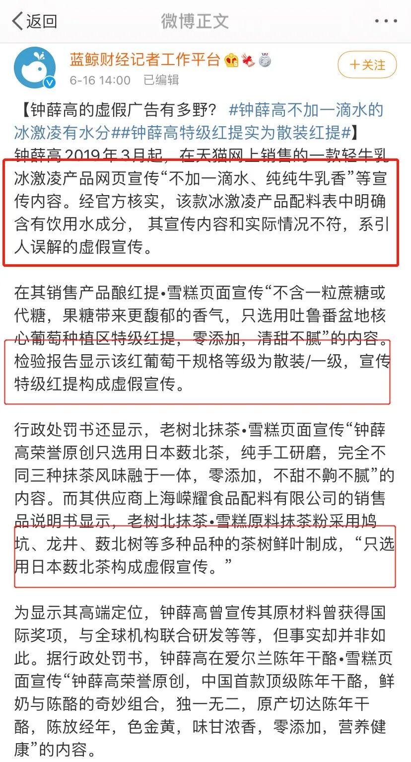 随后,钟薛高也在自己的官方微博上发表了相关声明: