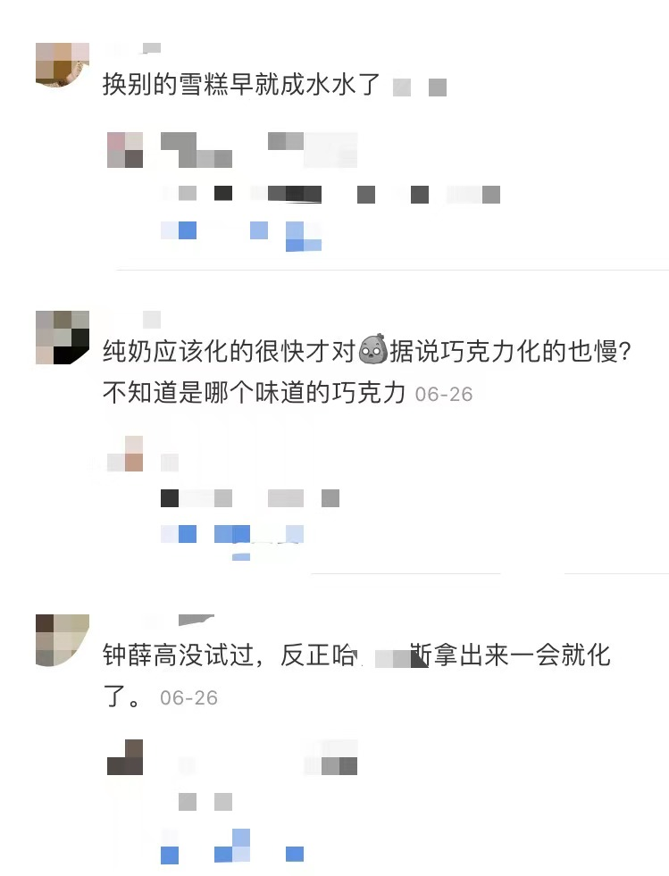两次结果让网友们对钟薛高产生了质疑:换成别的雪糕应该早化了吧,而且纯奶的应该化的很快才对