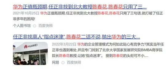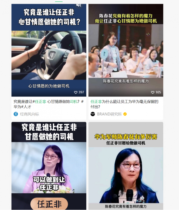 现在在各大短视频平台以“陈春花 华为”为关键词搜索,出来的大多都是下面这种内容: