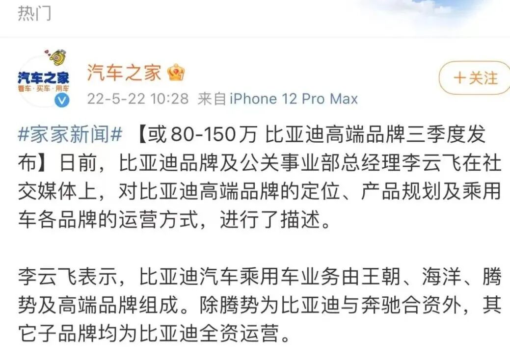 同时李云飞还表示该系列与曾经比亚迪旗下的汽车不同,这是个独立的品牌,配备全新立的产品团队、销售服务网络团队、运营团队。